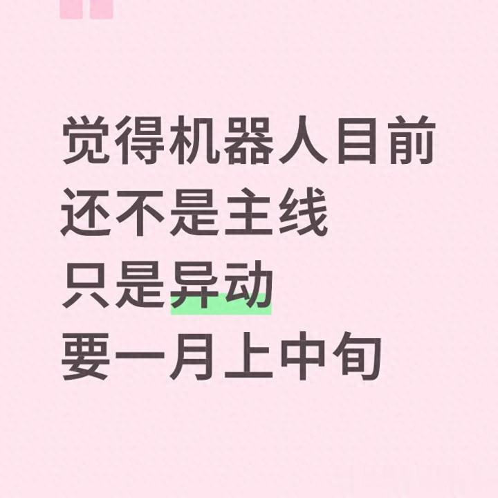说到底,机器人板块当前的异动是一月主线行情的“预热”,而非真正的趋势启动。看懂资金布局节奏和产业催化节点,才能在板块从异动转向主线的过程中,既避开短期炒作的坑,又能抓住长期的产业红利。